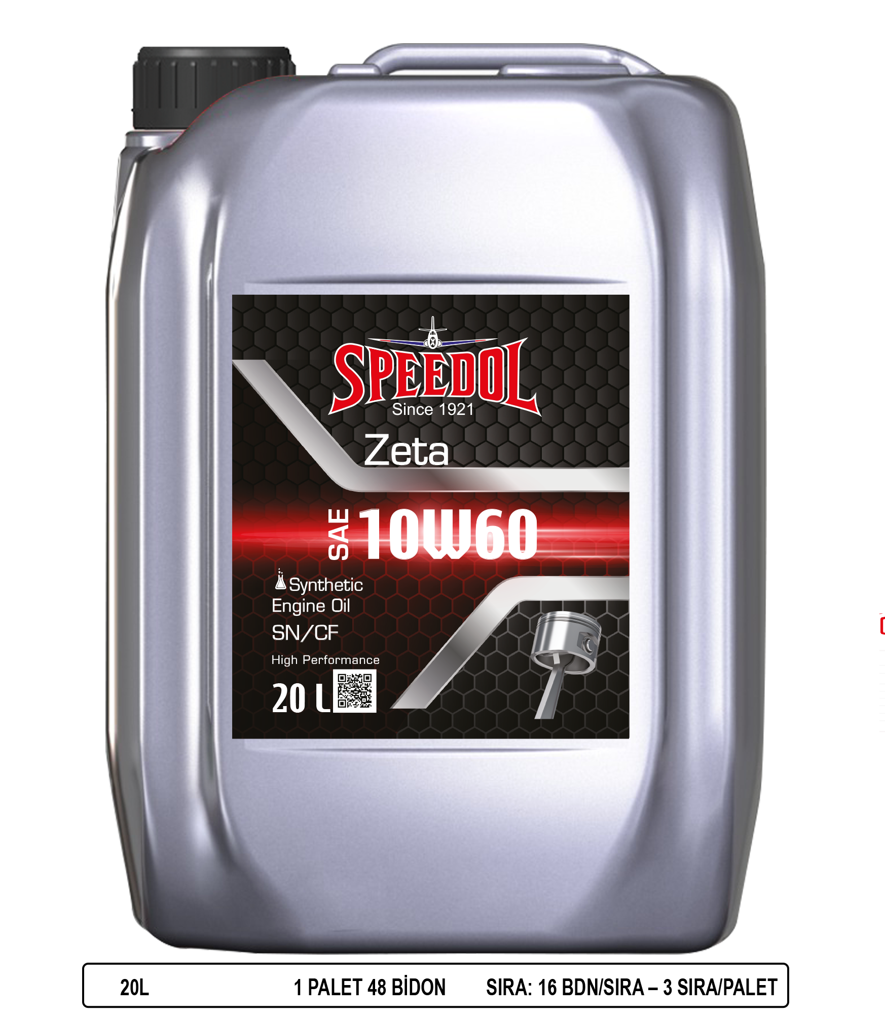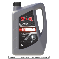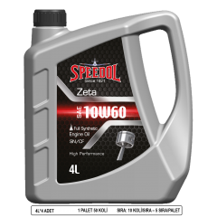 Speedol Zeta 10W60, üstün teknoloji ürünü sentetik baz yağların ve yüksek performanslı özel katıkların harmanlanması ile üretilmiş olan tam sentetik benzinli motor yağıdır. Modern 4 zamanlı motorlar için üretilmiş olup, motorun performans ve gücünü arttırır, yakıt ekonomisi sağlar. API CF performansının istendiği dizel motorlarda da kullanılabilir.