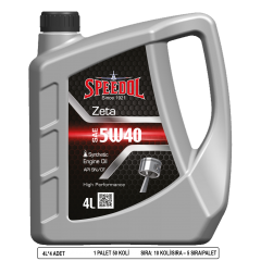 Speedol Zeta 5W40, üstün teknoloji ürünü sentetik baz yağların ve yüksek performanslı özel katıkların harmanlanması ile üretilmiş olan tam sentetik benzinli motor yağıdır. Modern 4 zamanlı motorlar için üretilmiş olup, motorun performans ve gücünü arttırır, yakıt ekonomisi sağlar. API CF performansının istendiği dizel motorlarda da kullanılabilir.