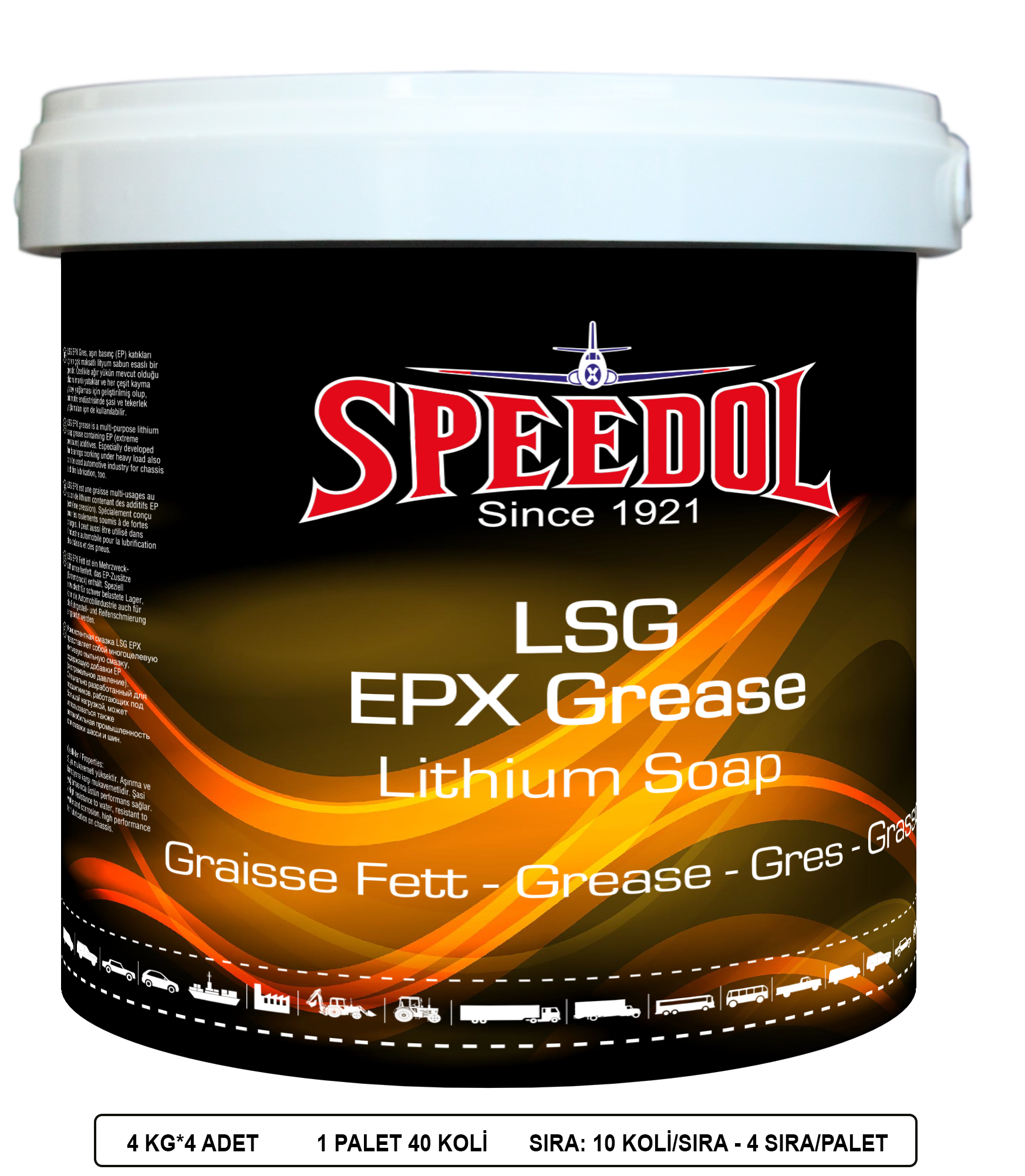 LSG EPX gresi, lityum sabunlu, pas, oksidasyon, AW ve yüksek miktarda EPX katıkları içeren suya dayanıklı sarı renkte bir üründür. Özellikle rulman yağlaması için geliştirilmiş olup, şasi yağlamasında kullanılabilir.
